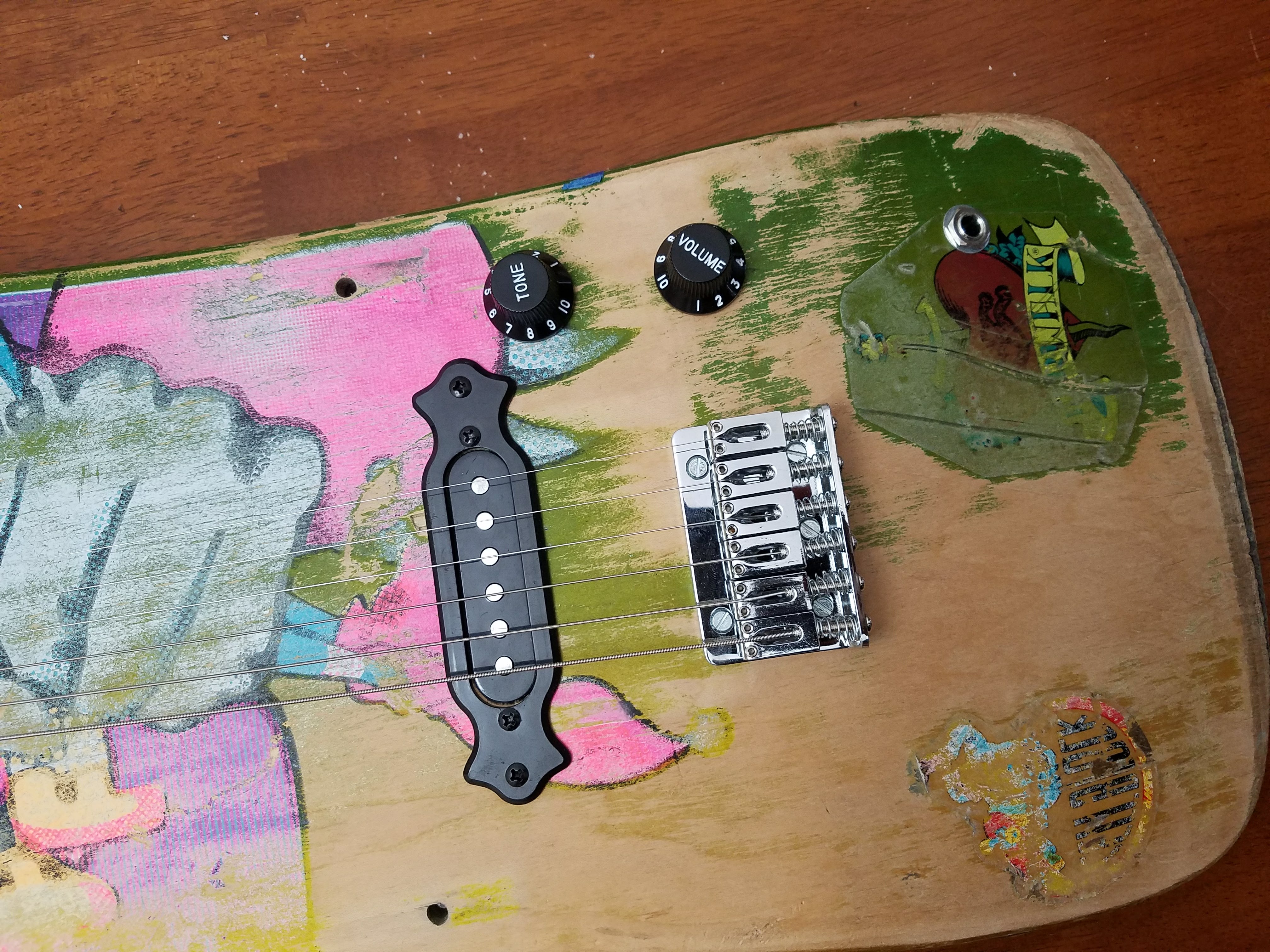 So…we had a bunch of parts for electric guitars in the basement, an old skateboard, and a Saturday with nothing to do.